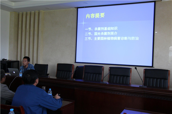 5月27日下午,甘肅泓盛生態農林發展有限公司邀請四川國光農化股份有限公司甘肅片區技術代表樂濤經理,來徽縣為公司員工做園林植物病害防治與診斷培訓。甘肅徽縣宏泰實業有限公司、徽縣天順苗木綠化工程有限公司等兄弟單位的20多名園林管理和專業技術人員一同參加了培訓。