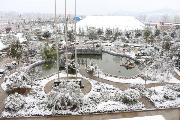 初春的第一場雪,把徽縣這座美麗的江南小城裝扮的更加俊俏了,然而懋達公司院內的花花草草,把春雪的美詮釋的更加完美。