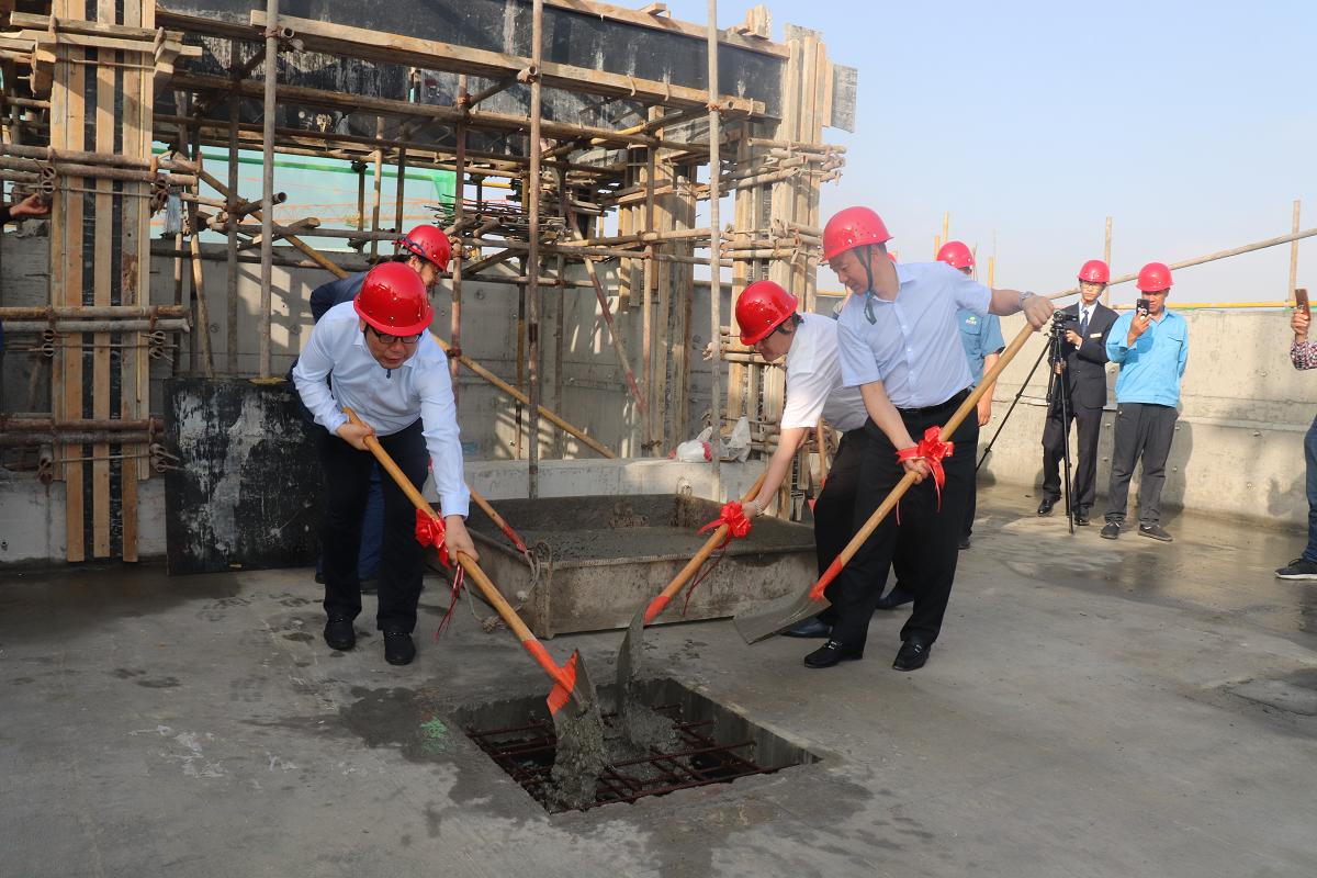 6月12日上午,由甘肅懋達建設工程有限公司承建的蘭州雁灘·金徽園商住小區項目現場橫幅高掛,伴隨著最后一方混凝土的澆筑完成,5棟單體工程主體結構全面封頂。建設、監理、施工等單位領導及項目部全體管理人員共同參加儀式。