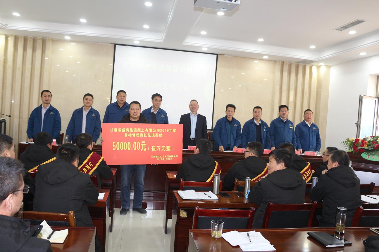 會議上,兌現了泓盛商品混凝土有限公司、泓盛房地產開發有限公司年度經營目標責任書。公司董事長李鎖銀與泓盛商品混凝土有限公司、泓盛房地產開發有限公司負責人簽訂了2020年度經營目標責任書。