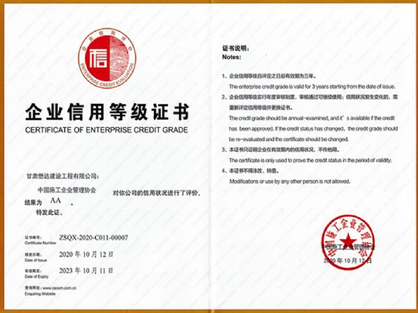 信用等級證書是市場經營、評優選優等活動的重要依據。獲評中國施工企業管理協會AA級信用企業,充分肯定了懋達建設誠信經營、創新發展的綜合實力,為企業持續健康發展打下了堅實的基礎。