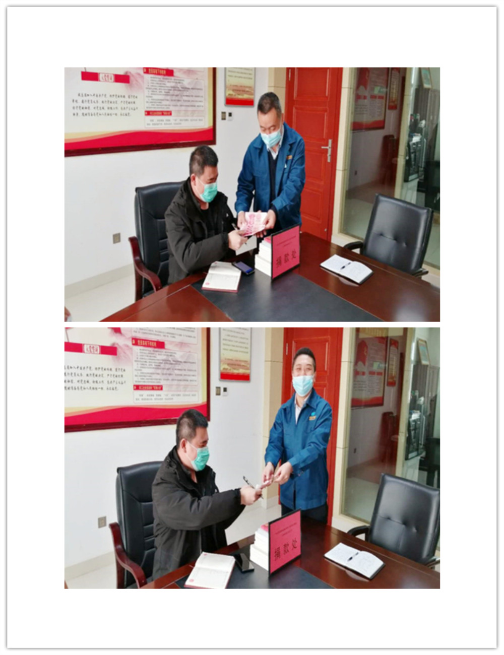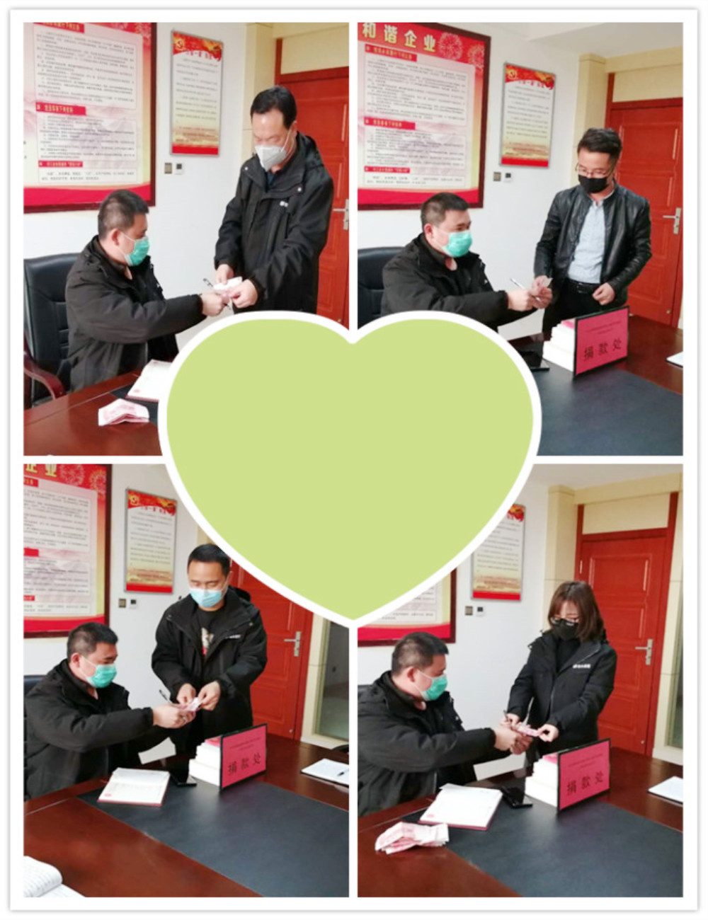 黨支部書記、公司副總經理尹向宏,支部預備黨員、公司副總經理邵曉輝分別將愛心捐款交到了捐款處。