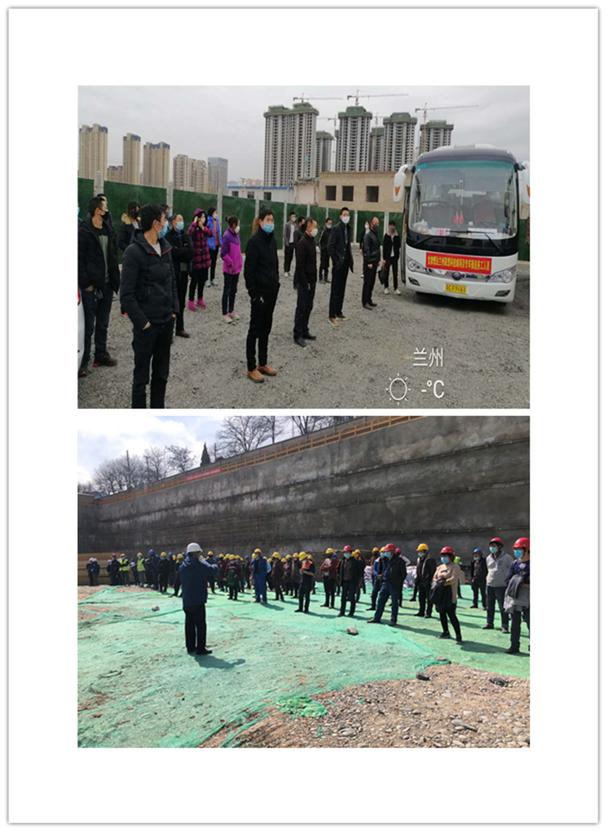 蘭州聯想科技城項目部安排專車接送務工人員,到施工現場后開展安全及疫情防控教育。