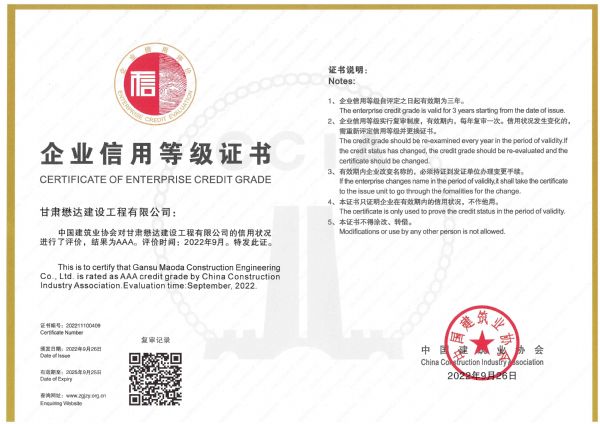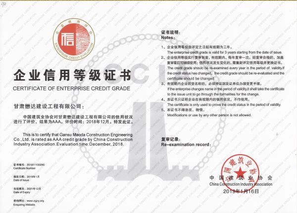 此次榮獲全國“建筑業AAA級信用企業”,這是繼2019年后,公司再次榮獲中國建筑業協會“全國建筑業AAA級信用企業”稱號,這標志著公司完善的信用管理體系和良好的經營狀況進一步被市場和行業所認可,是對公司綜合能力的充分肯定,對促進公司的健康持續及高質量發展具有重要意義。