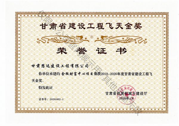 金徽財(cái)富中心項(xiàng)目——甘肅省建設(shè)工程飛天金獎(jiǎng)