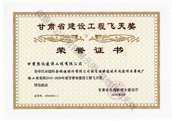金徽酒股份有限公司優(yōu)質(zhì)酒釀造技術(shù)改造項(xiàng)目景觀廣場(chǎng)工程——甘肅省建設(shè)工程飛天獎(jiǎng)