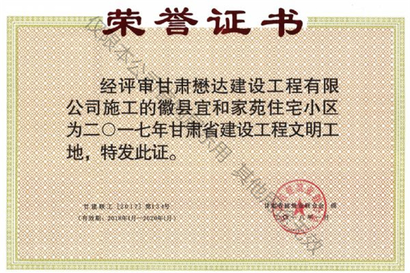 徽縣宜和家苑住宅小區(qū)工程--2017年度甘肅省建設工程文明工地