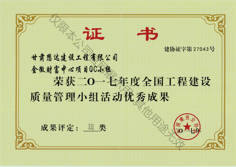 金徽財富中心項目QC小組---2017年度全國工程建設質量管理小組活動優秀成果III類