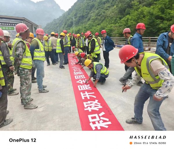 2024年6月是第23個全國“安全生產月”,活動主題是“人人講安全 個個會應急—暢通生命通道”。6月1日,懋達集團建設、地產、農林等各板塊、各項目部相繼舉行2024年全國“安全生產月”活動啟動儀式暨安全宣誓簽名活動,縣應急局、縣住建局、縣工信局相關領導應邀在泓盛商砼參加并指導活動。共有1500余名員工及施工、監理等相關人員參加啟動儀式并進行安全宣誓,在主題標語上簽名承諾。